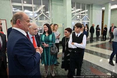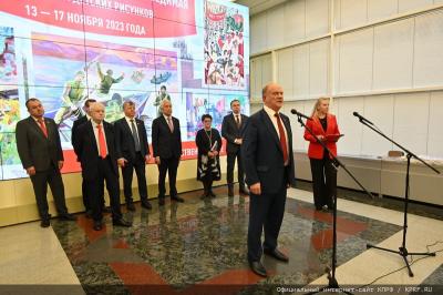 14 ноября в Государственной Думе состоялась церемония открытия выставки детских рисунков «Кипучая, могучая, никем непобедимая…». На открытии выступил Председатель ЦК КПРФ Г.А. Зюганов.