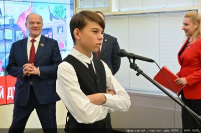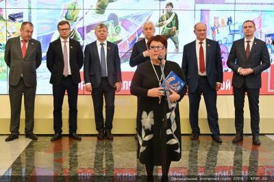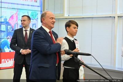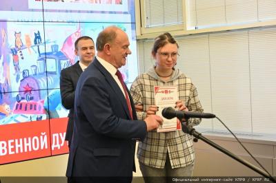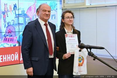 Лидер КПРФ Г.А. Зюганов вручил дипломы и подарки юным художникам Рашель Кушнер (Нижний Новгород), Александру Масловскому (Санкт-Петербург), Варваре Грачевой (город Пересвет Московской области), Анастасии Рудик (городской округ Шатура Московской области).