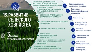 Что касается сельского хозяйства, то цели аналогичные: сбережение сельского населения, кадры, развитие науки, развитие селекции, генетики, технологического вооружения, справедливое распределение доходов от продуктов питания и сырья для промышленности это основа экономический и политической мощи России, это факт, с которым не надо спорить, что зафиксировано на 13 слайде.