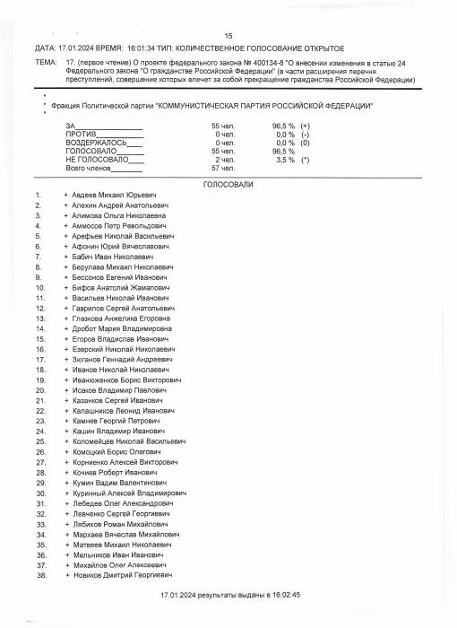 Депутат КПРФ проф. Матвеев внес законопроект о внесении в статью 24 ФЗ «О гражданстве Российской Федерации» поправок, которые предусматривали бы отмену приобретенного российского гражданства мигрантами, если они совершили тяжкие преступления, связанные с изнасилованиями, педофилией т.п.