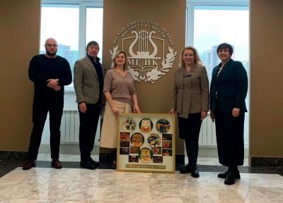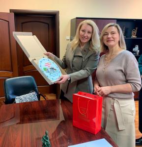 Слова благодарности за активную и патриотическую позицию института заместитель Комитета Государственной Думы по защите семьи, вопросам отцовства, материнства и детства Мария Дробот высказала проректору по учебно-методической и воспитательной деятельности Анне Юдиной. Представителю КПРФ руководители института передали уникальное панно из декоративных тарелок, которые сделали и расписали своими руками дети из Донецкой Народной Республики
