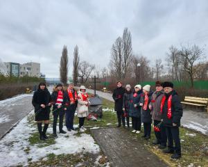 Побывали комсомольцы и на улице Речной, где в 1997 году была установлена часовня-киот в память о погибших в стенах Камышитового завода.