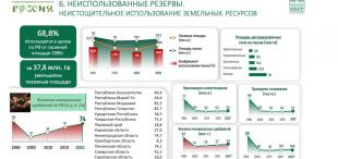 Сельскохозяйственный сектор. На слайде 1.5., видно, что за 30 лет, к сожалению, было разбазарено более 250 миллионов гектаров земель сельхоз назначения. Вдумайтесь в эту цифру! У нас осталось не так много, чтобы дальше разбазаривать.