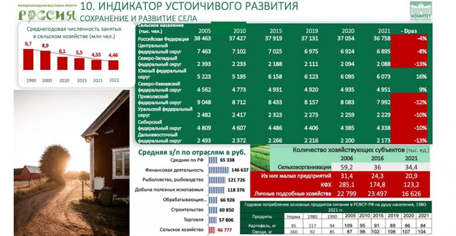 Некоторые тут кидают в советскую власть камни. Однако в 80-е гг., в 90-м году на селе зарплата была выше, чем в среднем по промышленности и экономике, и то народ сбегал из деревни. На данный момент в России зарплата на селе значительно ниже, чем в других отраслях. Эти цифры должны привести заинтересованных лиц к выводу о необходимости срочного решения этого вопроса.