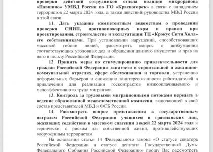 «О некоторых предложениях в связи с чудовищным террористическим актом в Москве 22 марта 2024»
