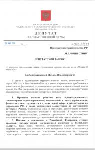 «О некоторых предложениях в связи с чудовищным террористическим актом в Москве 22 марта 2024»
