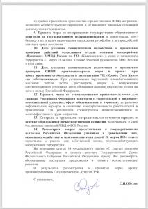 3. В кратчайшие сроки разработать положение о трудовой миграции, посредством которого будет, в том числе, внесена ясность в порядок и условия приглашения трудовыми мигрантами семей и родственников на территорию РФ в период действия их трудовых контрактов. Право на приглашение семей и родственников должны иметь лишь лица, внесённые в перечень ценных специалистов и заключившие длительные контракты трудоустройства на конкретном рабочем месте конкретного предприятия.