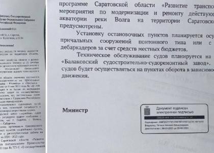 Пришел ответ из министерства транспорта Саратовской области на мой запрос об осуществлении пассажирских перевозок водным транспортом на территории региона.