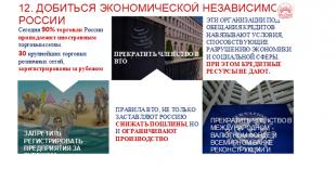 Здесь очень многое предстоит сделать, не на словах, а на деле. Не только локальными вливаниями поддержки многодетных семей, молодых семей - от ипотеки до конкретных денег за первого, второго, третьего ребенка и так далее. Здесь, безусловно, надо менять философию уверенности людей в завтрашнем дне, в будущем благополучии своей семьи, своих детей. И здесь надо заканчивать не только с «пятой колонной», но и с экономическим беспределом.