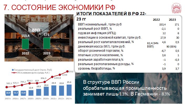 Мы не можем сегодня работать в системе существующего объема ВВП, особенно доходной части бюджета, от объема которого зависит реализация программ развития экономики и социальной сферы страны. Он сегодня ничтожен для решения огромных задач, которые предстоит решать в восстановлении промышленности, развитию сельского хозяйства, науки и так далее. По многим стратегическим направлениям мы испытываем серьезные проблемы.