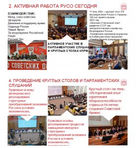 Во главе широкой коалиции научной патриотической общественности РУСО всегда строила работу в координации с организациями левого народно-патриотического движения и задач, решаемых Общероссийским штабом протестных действий.