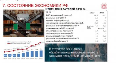 Всё это даёт нам уникальные возможности, не те, которые даже мы пишем сюда - к 55 трлн. руб. Но формирование этого бюджета развития даёт нам уникальные возможности по увеличению, минимум в два раза, заработной платы, пенсии на уровне 50% от этой заработной платы, и всего того, что связано с социальными благами, начиная от здравоохранения, образования, тогда и наши пенсионеры будут чувствовать себя совсем по-другому. И, конечно, это и промышленность, сельское хозяйство и наука.