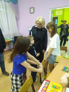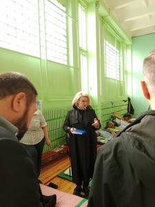 Первая встреча состоялась в пункте временного размещения школы №17, где находится 68 человек, 18 детей. Самому маленькому ребенку 1 годик и 3 месяца. Организацией взаимодействия с этими людьми и решением бытовых вопросов занят педагогический коллектив. Очень понравились старшеклассники, которые с готовностью выполняют волонтерские обязательства – ухаживают за взрослыми, носят продукты, воду.