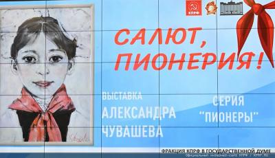 14 мая в Государственной Думе состоялось торжественное открытие выставки детских портретов «Салют, Пионерия!». Организатор выставки – фракция КПРФ в Госдуме. На открытии выступил первый заместитель Председателя ЦК КПРФ, депутат Госдумы Ю.В. Афонин. На выставке представлены работы художника из Удмуртии Александра Чувашева. Портреты советских детей в красных галстуках погружают в атмосферу счастливого беззаботного детства, непосредственности и искренности.