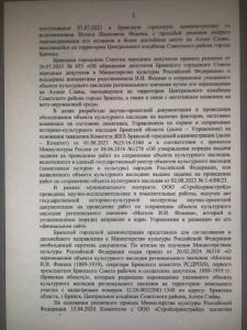 В декабре могила Фокина была узаконена, как объект культурного наследия регионального значения, после чего последовало официальное обращение от брянских властей в Минкульт о возможности её переноса. Приказ Минкульта от 20 февраля о перемещении объекта культурного наследия регионального значения под названием «Могила И. И. Фокина (1889 – 1919), секретаря Брянского комитета РСДРП (б), первого председателя Брянского Совета рабочих и солдатских депутатов» на Аллею Славы центрального кладбища Брянска датируется 20 февраля. И за этим последовало разрешение Минкульта на «перенос» захоронения.