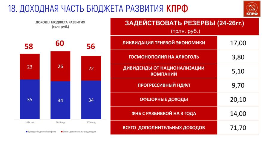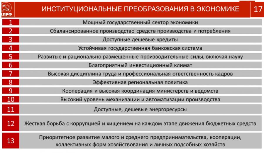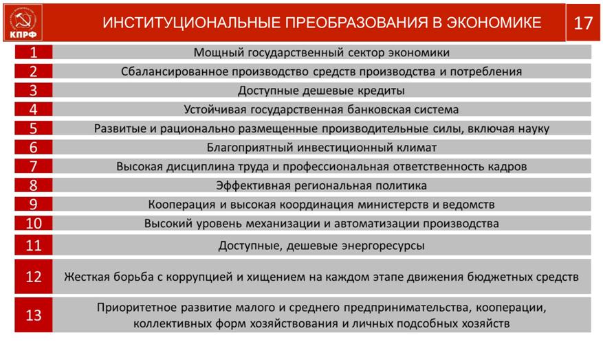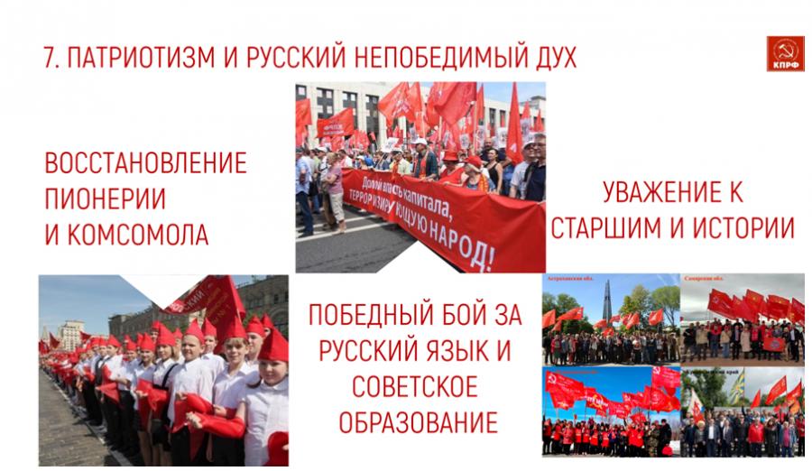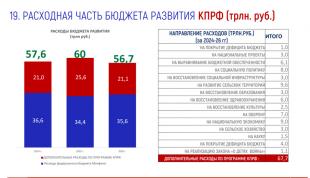Экономическая Программа Победы и бюджет развития Российского государства наш вклад в развитие страны. Они убедительно подтверждают, что КПРФ была и остается партией созидания и практической работы. Предлагаемые нами решения, направлены на экономическое и социальное развитие страны, выход из кризиса. Чтобы поставить новое правительство перед необходимостью в работе исходить из национальных интересов и ставить приоритетом улучшение жизни народа, а не запросы чиновничьего олигархата, нам, вместе с широким блоком патриотических сил, необходимо создать общественную поддержку нашим программам развития и законодательным инициативам.