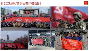 Важный момент той борьбы - сражение с пятой колонной за честь Красное Знамя Победы, священного для каждого русского человека. С ним наши предки разгромили гитлеровский фашизм, а сегодня Российская Армия, наши молодые воины сражаются с украинским фашизмом и глобальным Западом.