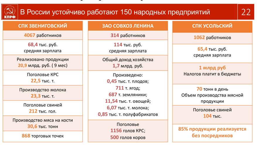 КПРФ защитила множество промышленных и сельскохозяйственных предприятий, народных коллективов.