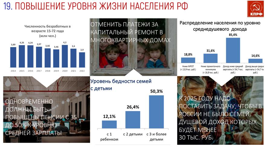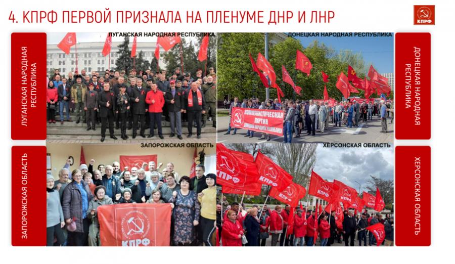 Сегодня партия ведет работу в условиях сурового военного времени. Идёт большая война за будущее России. Собственно, вся наша тысячелетняя летопись - это нескончаемая череда этапов борьбы и сражений за свою независимость и самобытность. КПРФ, все наши коммунисты сражаются плечо к плечу вместе с нашими воинами, со всем нашим народом и, безусловно, достигнем желанной победы. За пять месяцев текущего года мы провели 9 массовых Всероссийских уличных акций. Системная, конкретная работа на результат свойственна практике деятельности многих партийных отделений, среди которых Московские городское и областное отделения, Воронежское, Ростовское, Рязанское, Тамбовское, Краснодарское, Ставропольское, Свердловское отделение, республики Северная Осетия-Алания и многих других регионов. К примеру, Ростовским областным отделением КПРФ с 1 апреля 2023 года был организован сбор подписей среди граждан с требованием отказа от принятия проекта областного закона. Дело в том, что ранее, 27 марта, Губернатор Ростовской области внёс в Законодательное Собрание Ростовской области проект областного закона «О внесении изменения в статью 6 Областного закона «О капитальном ремонте общего имущества в многоквартирных домах на территории Ростовской области», согласно которому предусматривалось ежегодное установление Правительством Ростовской области не позднее 1 апреля минимального размера взноса на капитальный ремонт в размере не менее, чем на индекс потребительских цен, установленных в Ростовской области. Собрав подписи, Ростовский областной партийный комитет не позволил осуществить принятие этого антинародного Закона. За две недели местными отделениями КПРФ было собрано – 23 251 подписи и проект закона был отозван Правительством области.