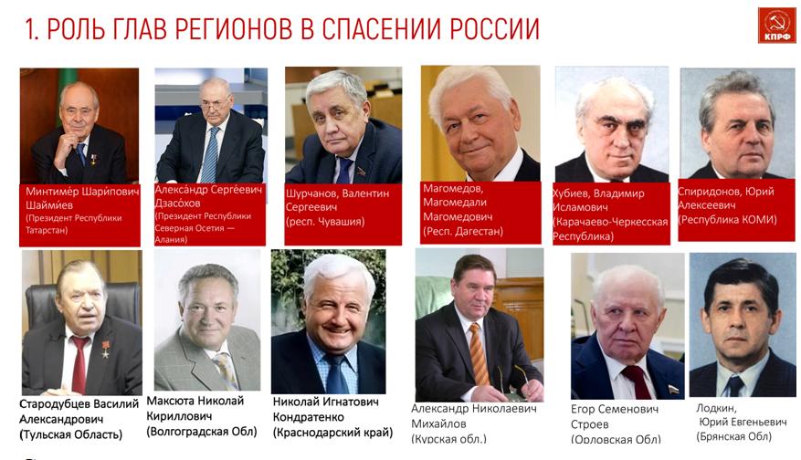 Наши красные губернаторы и патриоты страны тогда делали всё, чтобы сохранить нашу Родину единой и целой. Все они были членами Центрального Комитета, советовались и координировали свои действия с партией.