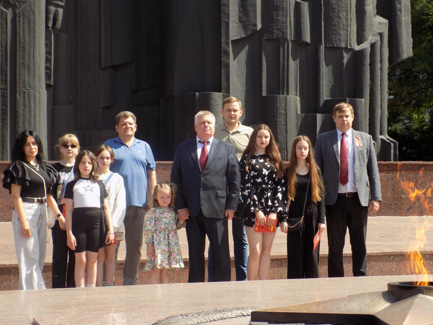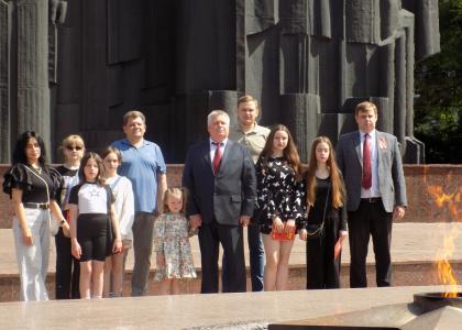 Вместе с депутатами Воронежской областной Думы Андреем Рогатневым и Денисом Росликом гости из ЛНР возложили цветы на Площади победы к Мемориалу защитникам Воронежа.