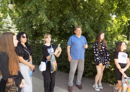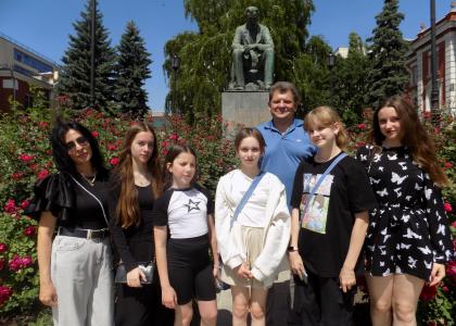 Затем девочки вместе со своим руководителем прогулялись по улицам, скверам, паркам, площадям Воронежа. Группу сопровождал первый секретарь Железнодорожного райкома КПРФ Дмитрий Румянцев, временно переквалифицировавшийся в экскурсовода. Благодаря его увлекательному рассказу Воронеж открыл гостям свои тайны о жизни писателей и поэтов, связанных с нашим городом, о культурных традициях воронежцев, о лучших ВУЗах и многом другом.