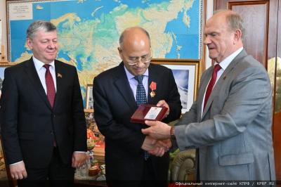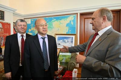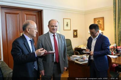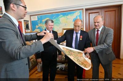 19 июня в Госдуме Председатель КПРФ Г.А. Зюганов провел экскурсию по выставке «Геннадий Зюганов. Время. События. Люди» для китайской делегации, возглавляемой вице-президентом Китайской Академии общественных наук Чжэнь Чжаньмином.