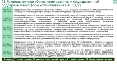 Из 89 законов, которые мы приняли в седьмую сессию и 48 законов, которые мы приняли за эти два года, не считая 24-й год, четверть законов посвящены как раз развитию малого бизнеса и в целом наведению порядка, в том числе, в земельных вопросах, вопросах экологии, государственной поддержки, о чем сегодня очень подробно говорила Министр Оксана Николаевна.