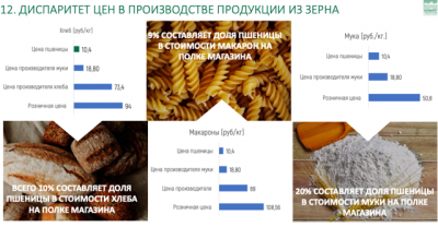 Вот представьте, зерно ваше забрали за 10 рублей, мука у производителя стоит 18 рублей, а в рознице на полке все 50 рублей. По макаронам, аналогичная ситуация, 10 рублей зерно, переработка 50, а по 104 стоит в рознице. Слушайте, в 5 раз накрутка на цену на зерно составляет торговая наценка. Это полный бардак.