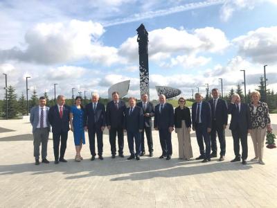 В рамках деловой программы расширенного заседания Комитета Государственной Думы по аграрным вопросам состоялась рабочая поездка депутатов в Лужский район Ленинградской области, которая началась с торжественной церемонии возложения цветов к Мемориальному комплексу мирным гражданам Советского Союза, погибшим в ходе Великой Отечественной войны.
