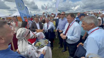 Председатель Комитета по аграрным вопросам В.И.Кашин поздравил организаторов и участников выставки с открытием Дня поля Ленинградской области и передал Приветствие Председателя Государственной Думы В.В. Володина.