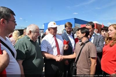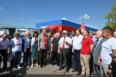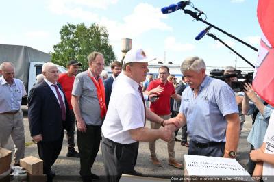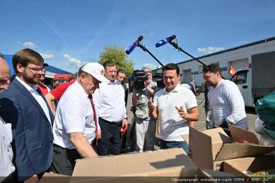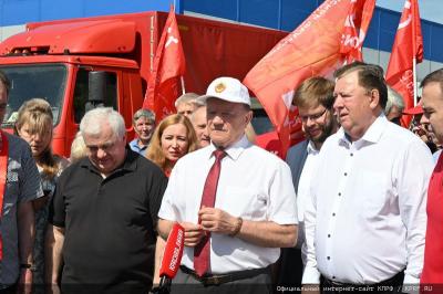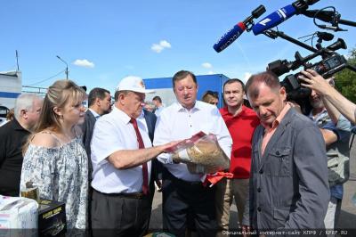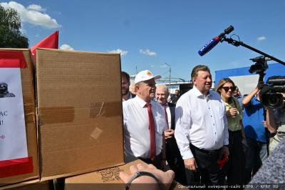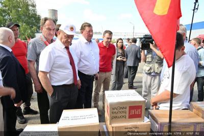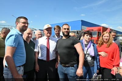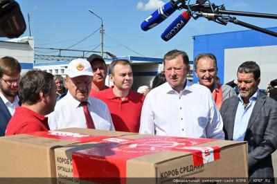 - Уважаемые товарищи! Сегодня КПРФ и народно-патриотические силы с этой площадки совхоза им. Ленина отправляют 127-й гуманитарный конвой.