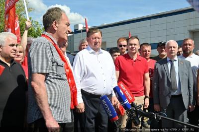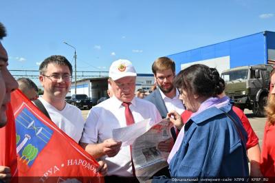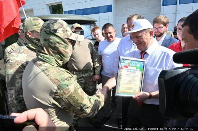 На митинге, перед отправкой гуманитарного конвоя, выступил лидер КПРФ Г.А. Зюганов: