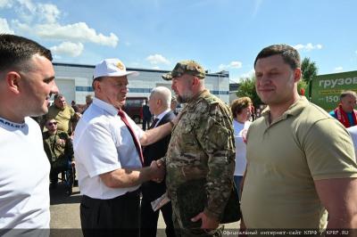 - Уважаемые товарищи! Любая Победа зиждется на единении фронта и тыла. Мы, Компартия Российской Федерации, 10 лет это единение организовываем. Вы видели сегодня, при обходе паллет с грузом, когда мы непосредственно подходили к тем, кому мы отдаем технику - к командирам взводов и батальонов, все они члены КПРФ. Это также и наши первые секретари городских и районных комитетов партии. Это греет душу, вселяет еще большую уверенность в нашей Победе добра над злом, идеологии справедливости над этой нечистью. Мы хотим еще раз поклониться в пояс ребятам, кто воюет, отдает здоровье в боях, кто отдал жизнь свою за Победу. Я должен сказать, что эти конвои, как говорит один из организаторов, начиная от первого до последнего конвоя, Казбек Тайсаев, что сотни тысяч людей были спасены этими конвоями от голодной смерти – старики, женщины, дети. 10 лет назад, у наших ветеранов в Луганской и Донецкой областях куска хлеба не было. Гуляли фашисты, не выйти из дома было. Когда появились наши первые конвои, радость светилась в глазах и бабушек, и дедушек, и ветеранов войны, и детей. Они увидели конфеты, печенье, тушенку, впервые за много лет. Я должен сказать, что мы отправляем головную часть конвоя, а из Ростова также отправляют десятки квадрокоптеров, другую технику, наборы, системные вещи, которые нужны на фронте, они поближе к фронту, и, конечно, продовольствие. Аналогично две 20-тонных фуры пойдут с Юга России - с Северного Кавказа и Ставрополья. Это все соединяется в единый большой конвой, который ждут на фронте. Его ценят. Я хочу всех поблагодарить. Еще раз хочу поблагодарить Губернатора Ульяновской области Алексея Русских и заводчан УАЗа. Мы часто бываем на этом заводе, знакомы с директорами, главными инженерами, рабочими предприятия. Они наши заявки выполняют в первую очередь. Должен сказать, эти машины очень ценятся и, по большому счету, они не застаиваются. Они как пирожки, сегодня выпекаются и уходят на фронт. Недавно приехал наш генерал-лейтенант, командующий 58-й Армией из Кургана, и рассказал, как ребята работают в три смены, как они героически трудятся, выпускают уникальные изделия, закрывая за 3-4 месяца потребности, которые через заказ идут с фронта. В целом - это единение фронта и тыла, и единение людей во многом состоялось. Об этом свидетельствует и то, что те, кто помыкал нами и пытался управлять в течение 30 лет, эта либеральная свора, сбежала из страны. Она испугалась этого настроя. Она испугалась левого поворота. Хочу еще раз всех поблагодарить за эту большую работу. А вам, Геннадий Андреевич, пожелать здоровья на долгие годы, также эффективно руководить всеми процессами.