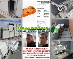 Приехавшими по просьбе обеспокоенных жителей сотрудниками полиции было установлено, что в сумках находятся электроприводы системы пожаротушения дома и иное общедомовое имущество (блоки питания вентиляционного оборудования и т.п.).