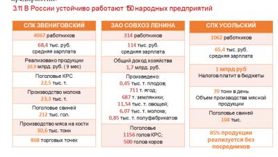Высший приоритет, безусловно, принадлежит крупным коллективным хозяйствам, стратегическим компаниям, но, в равном соотношении, поддерживаем личные подсобное хозяйства и малый бизнес. Сегодня много примеров, когда государственное предприятия, в промышленности и на селе, уникально работают. Известна системная работа РусГидро и Росатома, по вводу новых мощностей. Особо хотел бы отметить работу сельхозмашиностроение Петербургского тракторного завода и Ростсельмаша, и конечно же нужно сказать об эффективной работе наших народных предприятий. Сегодня в России работают 150 народных предприятий.