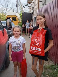…В микрорайон Тепличный Советского района к многодетной семье Арчаковых приехали первый секретарь райкома Денис Коломенцев и член Бюро райкома Василий Ковалев. С восторгом и интересом дети школьного возраста Вероника, Анастасия и Ярослав изучили школьные принадлежности, которые им привезли коммунисты.
