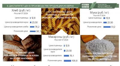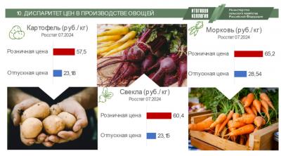Кроме того, мы обязаны обратить внимание на проблему ценового диспаритета. Сегодня наценки на сельскохозяйственную продукцию остаются чрезмерно высокими. Возьмите, например борщевой набор, вот картофель. Производители продают его по 23 рубля за килограмм, а в магазинах он стоит 57 рублей и более.