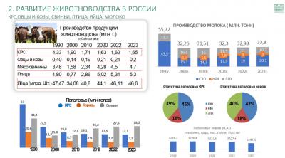 Однако, говоря о проделанной работе, мне бы хотелось подчеркнуть несколько ключевых моментов, которые требуют дальнейшего внимания и корректировки. Один из таких вопросов касается продовольственной безопасности, а именно молочного животноводства. Мы видим, что в сельскохозяйственных организациях удалось добиться хороших показателей по продуктивности — надои на одну фуражную корову составили 7,9 тысяч литров молока, что является достойным результатом. Однако, если мы посмотрим на валовое производство молока и его перспективы, становится очевидным, что необходима пахота в этой области.