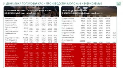 На слайде 3 видно, что Тверские и Костромские аграрии в 12 раз сократили поголовье КРС и не спешат исправлять ситуацию, а если взять Нечерноземье целиком то результат прошедших 30ти лет ошеломляет своим негативом.