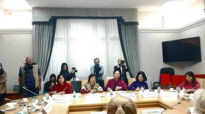 26 сентября в Государственной Думе состоялась встреча Председателя Комитета Государственной Думы по защите семьи, вопросам отцовства, материнства и детства, руководителя Общероссийской женской общественной организации «Надежда России» Н.А. Останиной и члена Президиума ЦК КПРФ М.В. Дробот с делегацией Союза женщин Вьетнама.