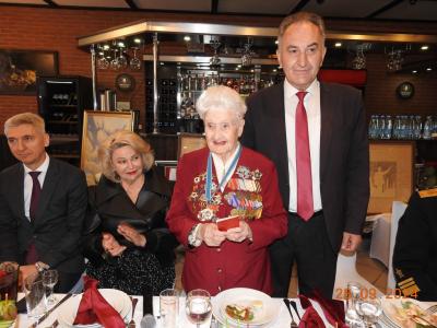 От лица Всероссийского женского союза «Надежда России» выступила депутат ГД ФС РФ Останина Н.А. и передала поздравления легендарной Марии Михайловне от Международной демократической федерации женщин, с надеждой на дальнейшее сотрудничество в деле сохранения исторической памяти и мира во всем мире. От имени ветеранов Сибирской дивизии поздравительный адрес и пожелание достичь своей цели «Одиннадцатому Сталинскому удару» передала депутат из Новосибирска Корякина О.А.