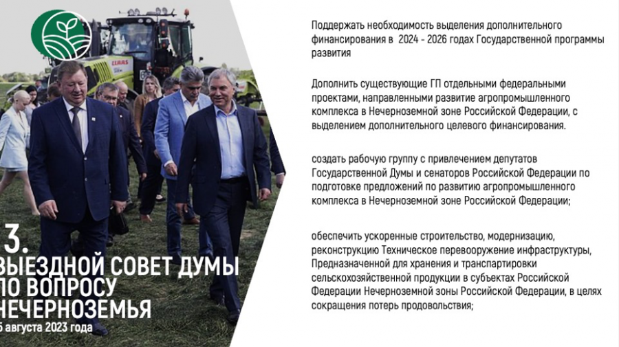 Также крайне актуальна разработка мер, направленных на снижение цен на удобрение и горюче-смазочные материалы (ГСМ) для АПК. Рост цен на топливо, удобрения и сельхоз технику создаёт серьёзные финансовые трудности для аграриев, и мы должны держать руку на пульсе.