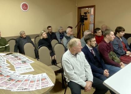 В помещении местного отделения КПРФ "Ленинское" состоялся первый в нынешнем учебном году семинар Школы марксизма-ленинизма. На нем присутствовали первый секретарь райкома КПРФ Б.С. Кoнoвалoв, секретари И.В. Козлов и М.Б. Чистый, член бюро комитета А.Г. Оборотов, активисты партийных отделений, комсомольцы и сторонники КПРФ.