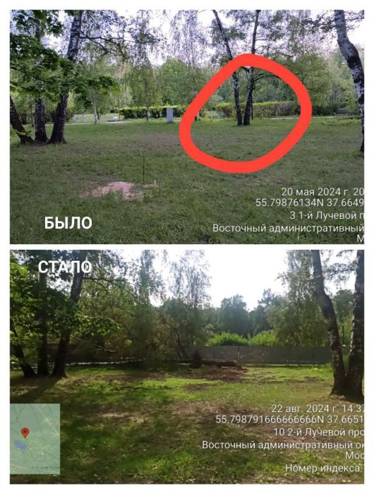 Так, например, в июле там же, возле насосной станции, также исчезли деревья, которые, якобы, упали во время урагана. Будучи предварительно подпиленными.