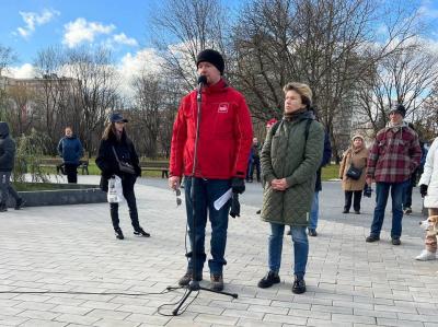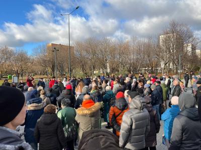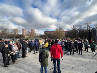 Депутат Госдумы от КПРФ, секретарь МГК КПРФ Д.А. Парфенов провёл встречу с жителями районов Перово и Новогиреево, протестующими против застройки природного комплекса “Парк на Зелёном проспекте” и выступающими за перенос запланированных к возведению объектов в другое место. На встречу у памятника воинам-москвичам, воевавшим в Афганистане, собралось очень большое число жителей.