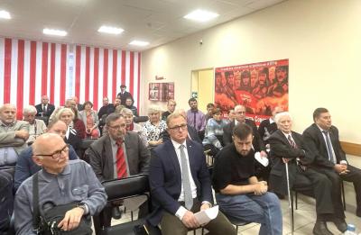 С докладом выступил первый секретарь Псковского обкома КПРФ Петр Васильевич Алексеенко. Лидер коммунистов Псковской области рассказал о значимости исторической роли коммунистов в борьбе с фашизмом, подчеркнул важность использования этого опыта сегодня.