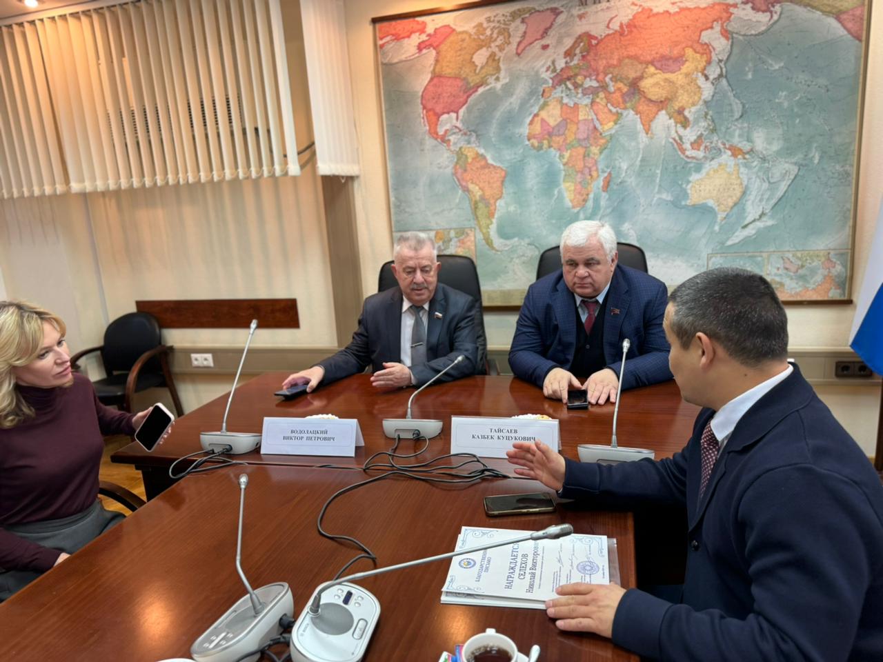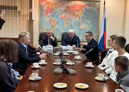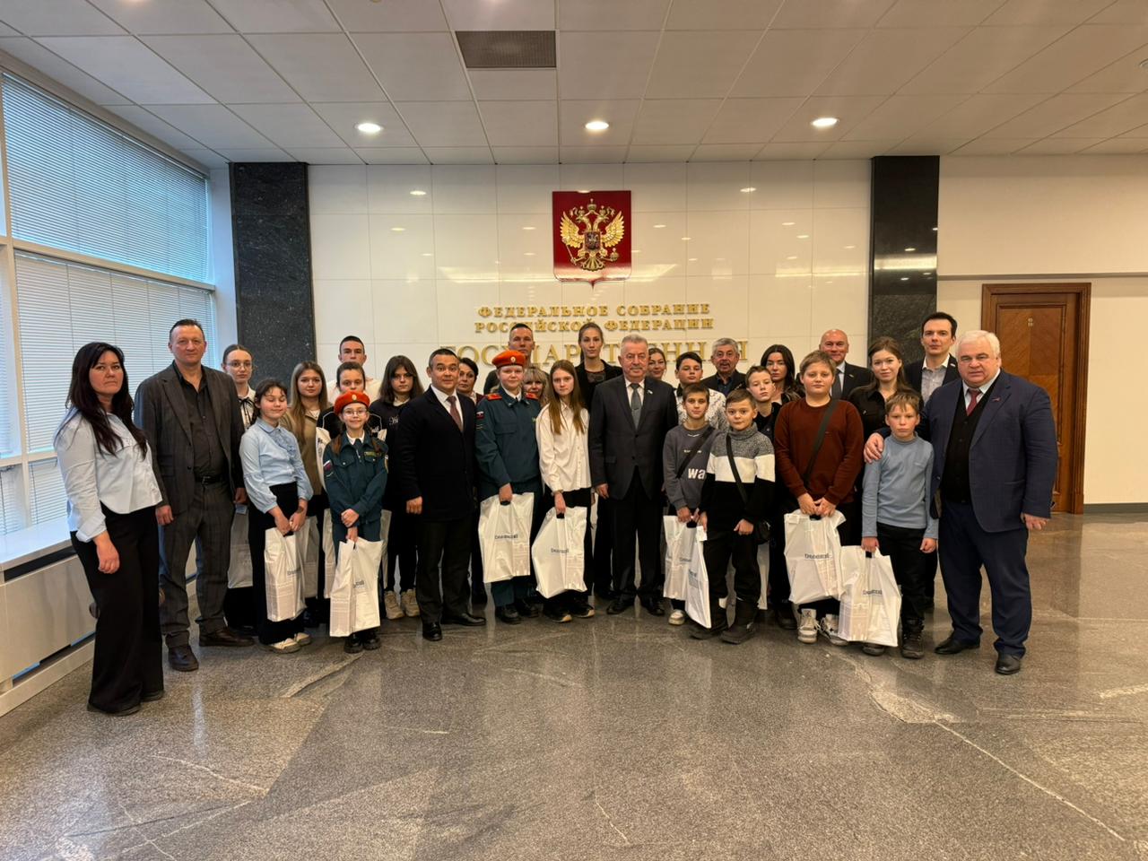 25 ноября 2024 г., Секретарь ЦК КПРФ, Первый заместитель Председателя ЦС СКП-КПСС, Первый заместитель Председателя ГД по делам СНГ, связям с соотечественниками и евразийской интеграции Казбек Куцукович Тайсаев провел встречу с победителями и призерами Всероссийского конкурса школьных генеалогических исследований «Моя родословная» из Приазовского района Запорожской области и г. Краснодона Луганской Народной Республики в Государственной Думе Российской Федерации.