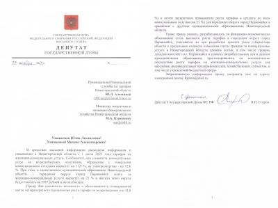 Депутат Государственной Думы РФ, первый секретарь Комитета Нижегородского регионального отделения КПРФ Владислав Егоров направил депутатский запрос на имя руководителя региональной службы по тарифам Юлии Алешиной и министра энергетики и жилищно-коммунального хозяйства Нижегородской области Михаила Куренкова.