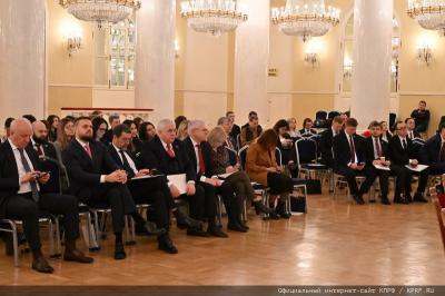 Первый заместитель председателя Госдумы Александр Дмитриевич Жуков озвучил приветствие думского спикера Вячеслава Викторовича Володина: